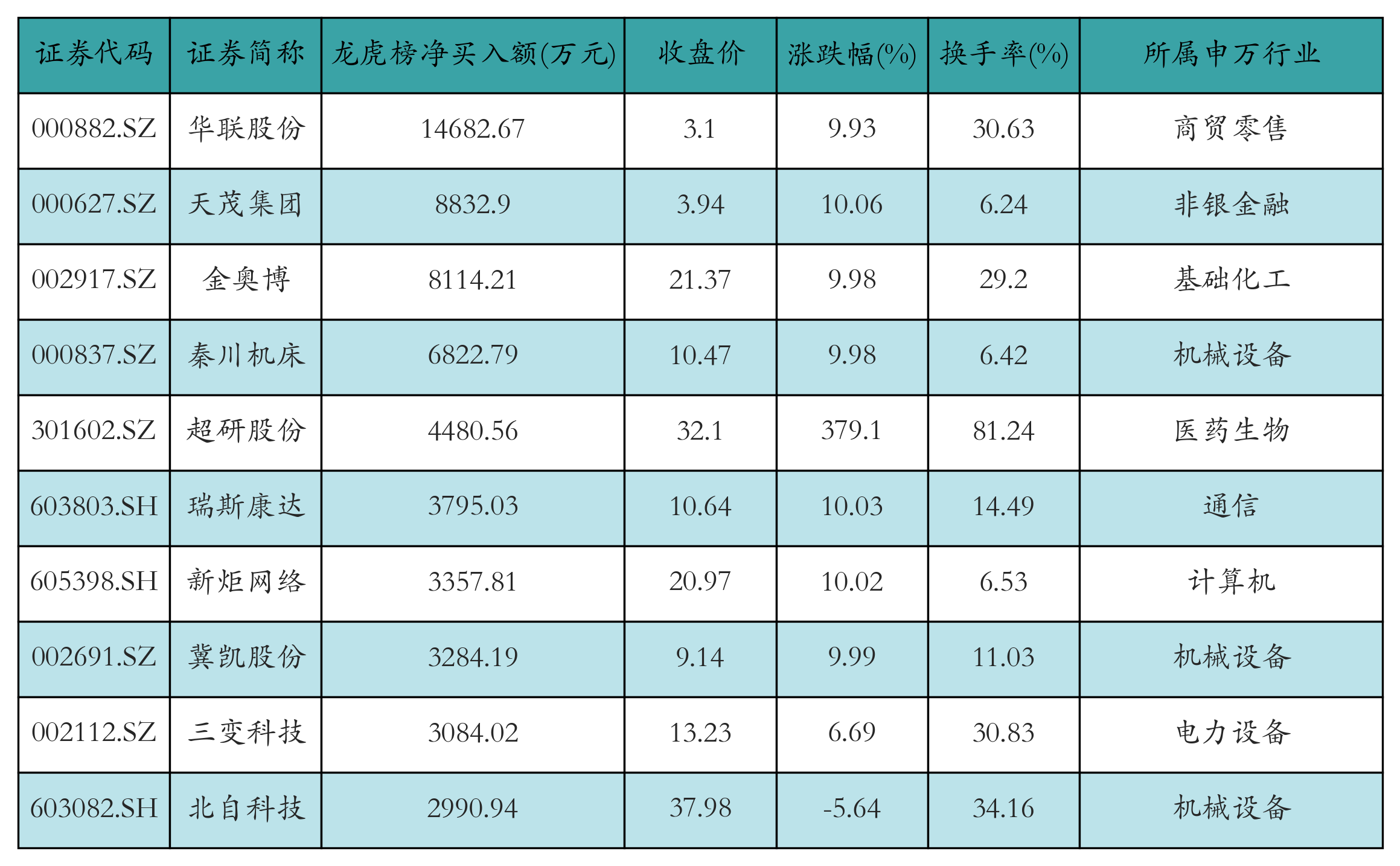 昨日龙虎榜营业部净买入额前10详情见下表: